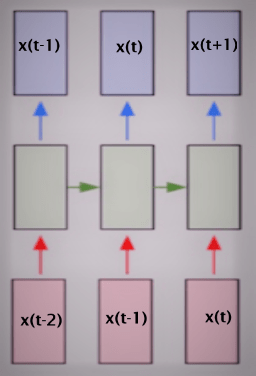 The basic concept of RNNs is that we train an additional set of weights (along with the standard input – output pair) that associate past state (time: t-1) with the current state (time: t). This can then be used to predict the future state (time: t+1) given the current state (time: t). In other words RNNs are NNs with state!