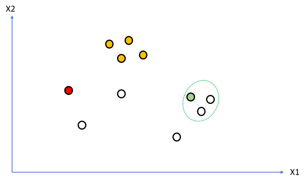 The algorithm attempts to sort a dataset into either a noise point (an outlier – not in any cluster) or a cluster member.