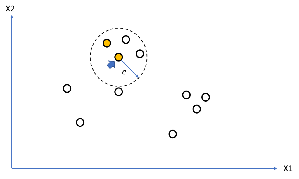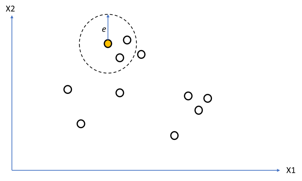 Epsilon – Neighbourhood Size: this should be chosen keeping in mind that a high value will tend to group regions together into large clusters and a low value will result in no clustering at all.