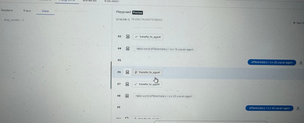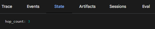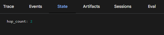 In the snippet above we add a hop_count session state variable to maintain a log of how many times this agent has been called per session. The real world use of this would be to ration the use of ‘expensive’ agents.
