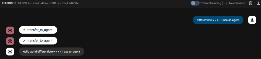 MODEL = LiteLlm(model="ollama_chat/qwen3.5:2b")instruction = """You are an autonomous agent that takes a complex maths problem and breaks it down into smaller steps to solve it. You have access to a set of agents for each branch of maths."""stub_agent_1 = StubAgent(name="Stub_Agent_Integration", description="Agent that can do Integration problems")stub_agent_2 = DeterministicStubAgent(name="Stub_Agent_Differentiation", description="Agent that can do Differentiation problems")root_agent = LlmAgent(name="Root_Agent", description="Root agent for handling conversation and classification of problem", instruction=instruction, model=MODEL, sub_agents=[stub_agent_1, stub_agent_2])