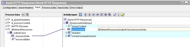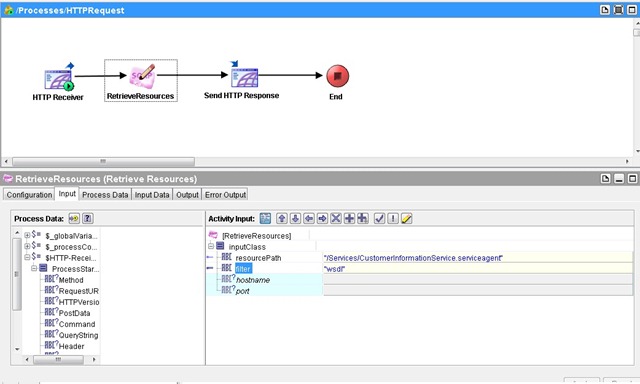 For example the process to handle request for customer information (i.e. RequestCustomerOperation) should have output for the Start activity a WSDL message: CustomerInformationRequest (that is the input going in to the RequestCustomerOperation). Same goes for the input to the End activity which should be a WSDL message: CustomerInformation.